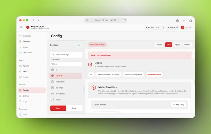 This is the core no-code setup step. We will add DGrid as a model provider, configure your API credentials, and add supported models — all via point-and-click in the OpenClaw Control UI, with zero file editing.