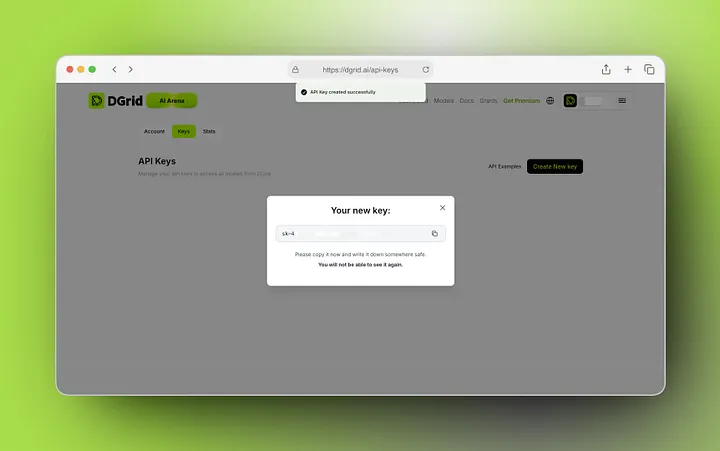 Critical Security Note: Treat your DGrid API key as a sensitive authentication token. Never share it, store it in unencrypted files, or commit it to version control systems. Rotate your keys regularly via the DGrid console for maximum security.